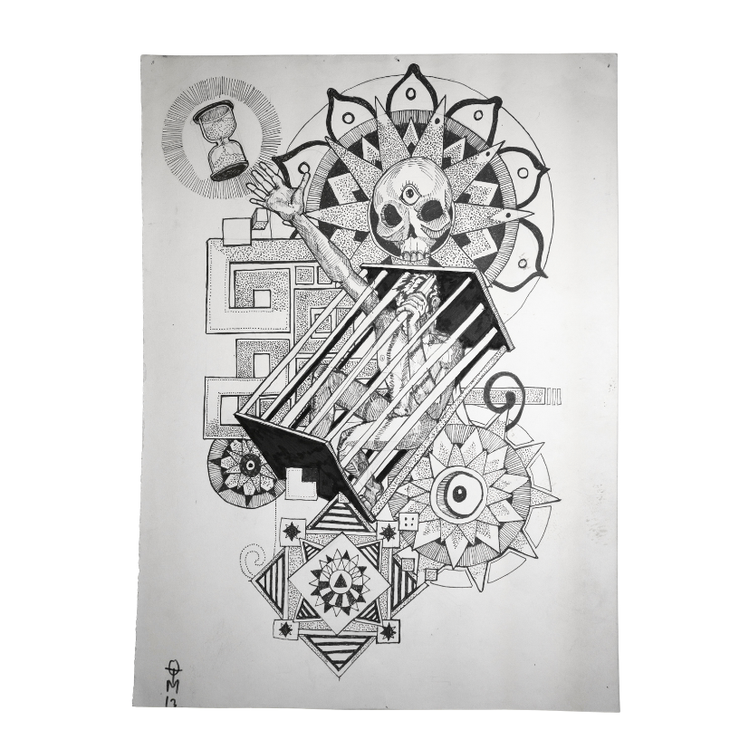 En attendant le jour de sa destinée, il dessine des idées improbables depuis le début de son parcours. Celui-ci est passé par une formation de sculpteur-modeleur dans l’animation stop-motion, puis le graphisme, la peinture, le travail agricole, l’élevage de sa progéniture « bisomique » et trisomique, et la pratique du tatouage. Sur ce dernier point, certains diront que ce ne sont que des gribouillages, mais il sait reconnaitre un bon système de propulsion !